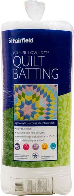 Poly-Fil Low-Loft® quilt batting sets the standard for all other 100% bonded polyester battings. It is a favorite among machine quilters and hand quilters. It will retain its loft wash after wash and dries quickly, making it ideal for lightweight quilts and baby quilts. Hand quilters love that it is the easiest batting to needle through and accentuates tiny hand stitches. Weight: 2 oz. / sq. yd.